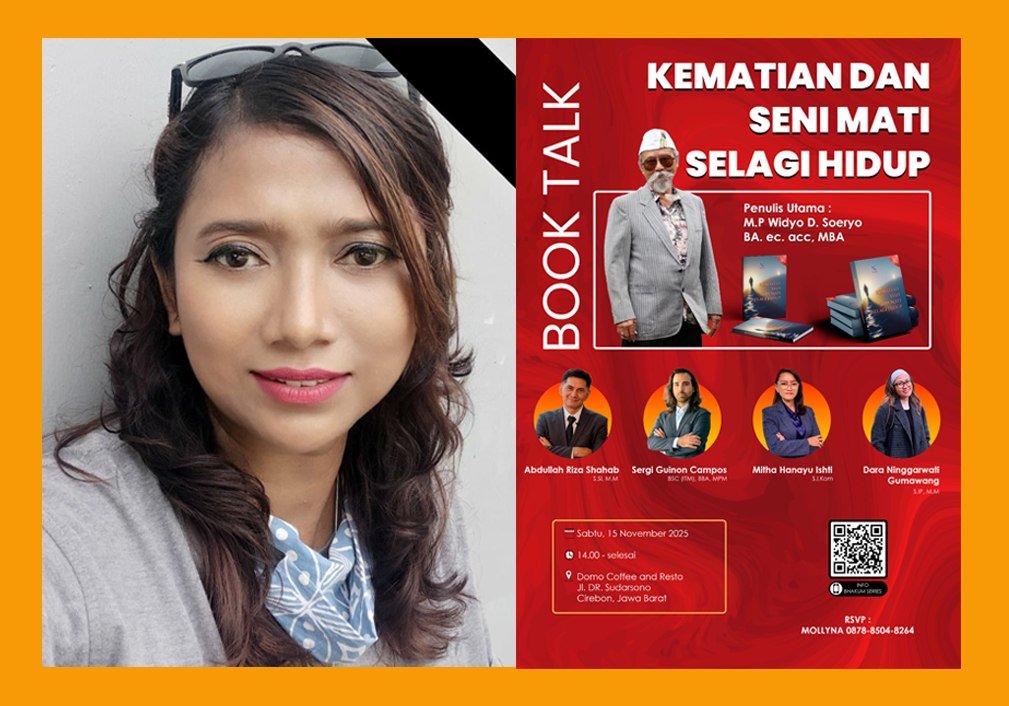 Dalam diskusi yang akan menghadirkan sosok M.P Widyo D . Soeryo BA. ec.acc, MBA, Abdullah Riza Shahab, Sergi Guinon Campos, Mitha Hanayu Ishti, dan Dara Ninggarwati Gumawang ini akan mengajak jiwa penasaran para pembaca buku tentang kematian dari sudut pandang pada pembahasnya.