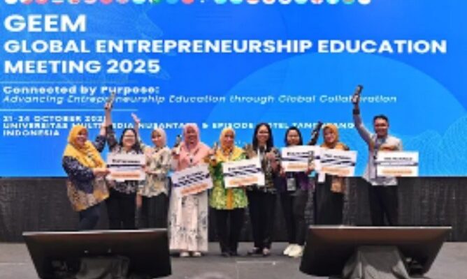 TANGERANG, AKSI KATA. COM – Gelaran Global Entrepreneurship Education Meeting (GEEM) 2025 yang berlangsung di Tangerang pada 21–24 Oktober bukan hanya menjadi ajang bertukar ide, melainkan juga membuahkan hasil nyata. Dari berbagai sesi dialog lahir tiga proyek kolaborasi lintas negara yang akan memperkuat ekosistem pendidikan kewirausahaan global.