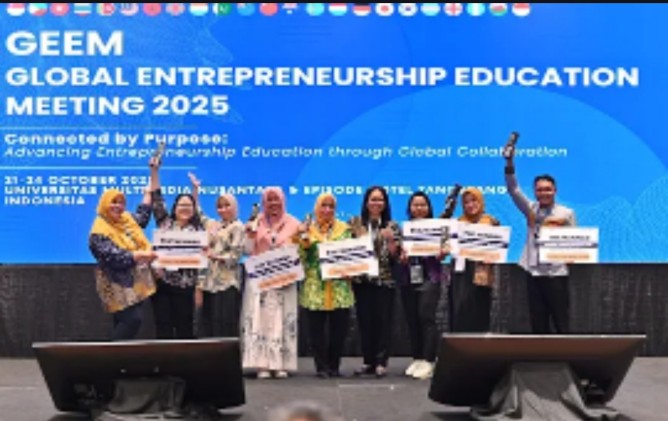 TANGERANG, AKSI KATA. COM – Gelaran Global Entrepreneurship Education Meeting (GEEM) 2025 yang berlangsung di Tangerang pada 21–24 Oktober bukan hanya menjadi ajang bertukar ide, melainkan juga membuahkan hasil nyata. Dari berbagai sesi dialog lahir tiga proyek kolaborasi lintas negara yang akan memperkuat ekosistem pendidikan kewirausahaan global.