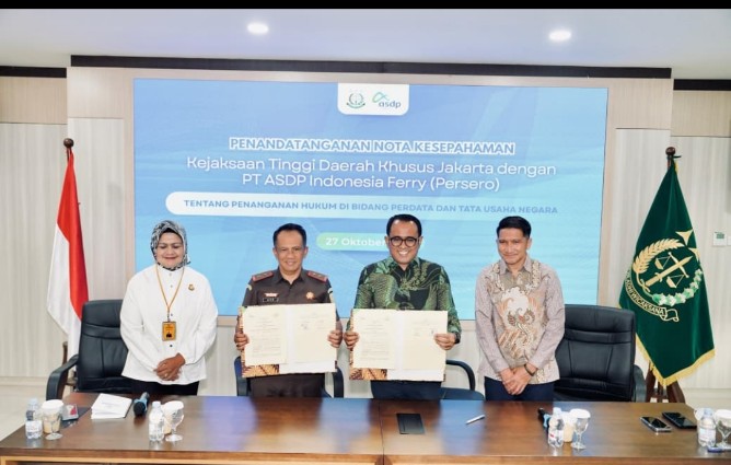 JAKARTA, AKSI KATA. COM – PT ASDP Indonesia Ferry (Persero) resmi menjalin kerja sama strategis dengan Kejaksaan Tinggi DKI Jakarta dalam bidang hukum perdata dan tata usaha negara. Sinergi ini ditandai dengan penandatanganan Memorandum of Understanding (MoU) pada Senin (27/10) di Gedung Kejaksaan Tinggi DKI Jakarta.