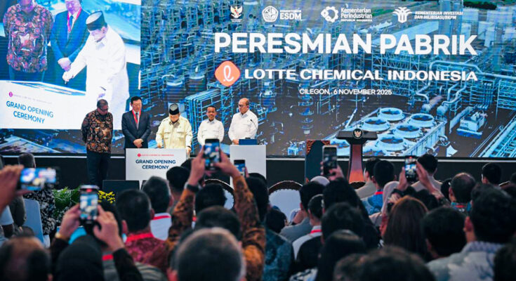 CILEGON, AKSIKATA.COM – Presiden Prabowo Subianto meresmikan pabrik Lotte Chemical Indonesia (LCI) di Kota Cilegon, Provinsi Banten, Kamis, 6 November 2025. Acara peresmian ini menandai beroperasinya salah satu proyek industri petrokimia yang menjadi tonggak penting dari upaya pemerintah memperkuat hilirisasi industri nasional.