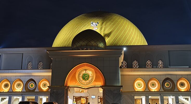 BEKASI, AKSIKATA.COM – Di Perumahan Grand Wisata Bekasi, tepatnya di Jl. Sunset Avenue Grand Wisata, Desa Lambangsari, Kecamatan Tambun Selatan, Kabupaten Bekasi terdapat sebuah masjid yang sangat indah dan mencerminkan keindahan seni islam yang sangat mewah. Masjid itu bernama Izzatul Islam yang sarat dengan kekayaan arsitektur megah dengan sentuhan Timur Tengah. Keindahannya terpancar sangat kuat, sehingga dapat dirasakan sejak pertama kali melihat masjid ini.