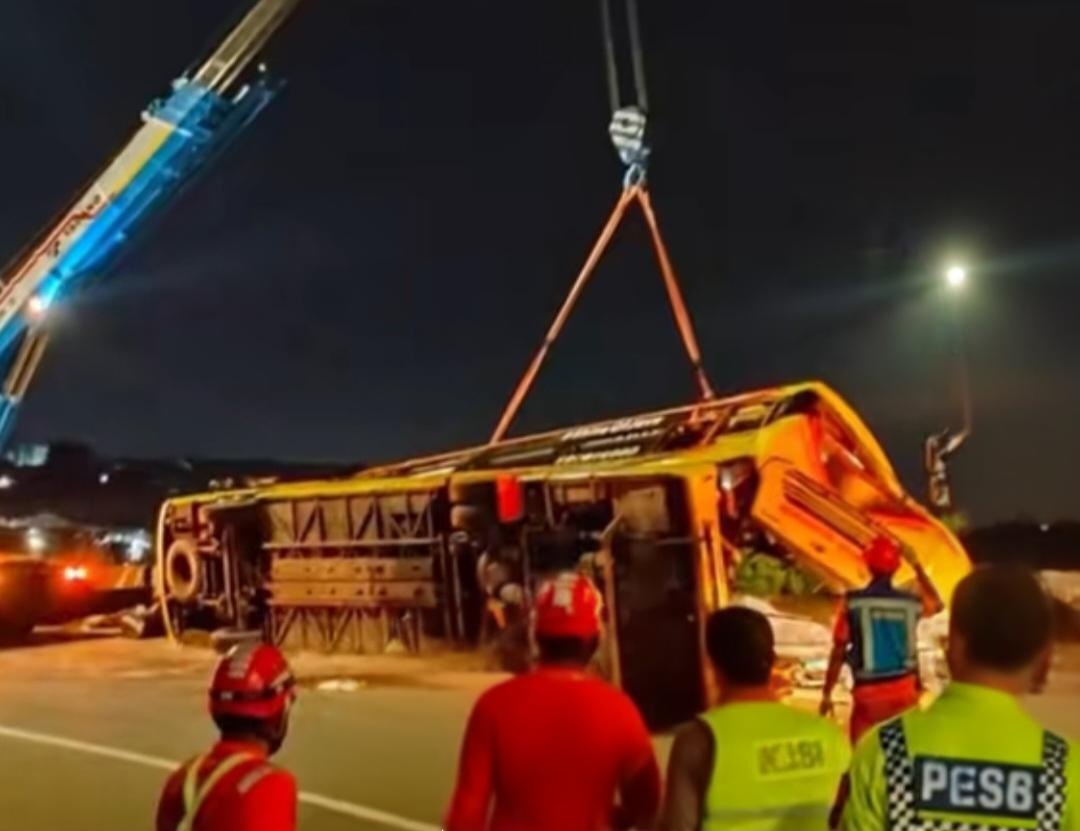 SEMARANG, AKSIKATA.COM – Kecelakaan maut terjadi di Exit Tol Krapyak, Semarang, Senin (22/12/2025) dini hari, ketika sebuah bus PO Cahaya Trans menabrak pembatas jalan hingga menyebabkan 15 orang meninggal dunia dan 19 lainnya luka-luka.