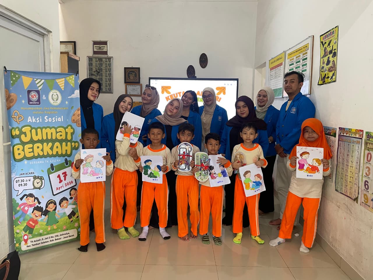 Kegiatan ini diharapkan dapat mendukung penguatan Profil Pelajar Pancasila dalam membentuk generasi yang peduli dan peka sosial. Melalui kolaborasi antara mahasiswa dan pihak sekolah, nilai-nilai kemanusiaan diharapkan menjadi pondasi karakter siswa TK Azizah di masa depan.